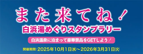 お知らせ南紀白浜温泉に宿泊し豪華景品をGETしよう!「また来てね!~白浜湯めぐりスタンプラリー~」を開始します