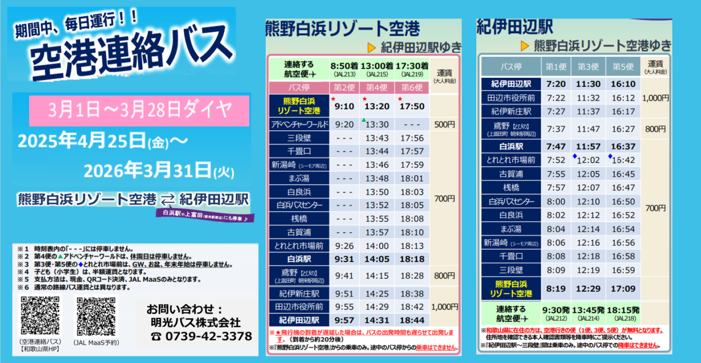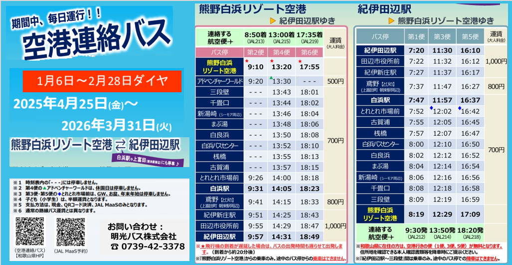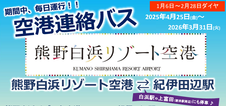 熊野白浜リゾート空港連絡バスは、国内定期便の発着に合わせて“空港”と“近隣市町の主要ポイント”を繋ぎました。